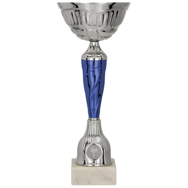 Metalowy puchar z klasycznym złotym kielichem. Charakteru nadaje mu elegancka niebieska nóżka i stopka w kolorze złota.