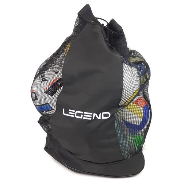 Worek do noszenia piłek sportowych marki Legend wykonany z mocnego nylonu i siateczki.