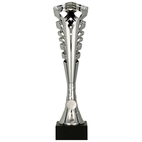 Srebrny puchar, którego nowoczesny kształt rozchodzący się w górę nadaje nagrodzie dynamizmu, to świetny sposób, aby wyrazić uznanie i docenić sportowy trud obdarowanego.. W środku kielicha Istnieje możliwość personalizacji pucharu za pomocą emblematu.