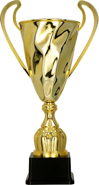 - Złoty, metalowy puchar z ozdobnymi ramionami to idealna nagroda dla zwycięzców. Puchar dostępny w różnych wysokościach.