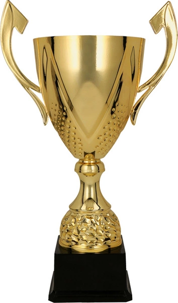 - Złoty metalowy puchar z ozdobnymi ramionami to idealna nagroda dla zwycięzców. Puchar dostępny w różnych wysokościach.