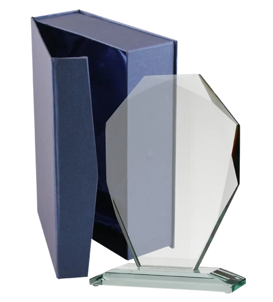 - Szklane trofeum wraz z grawerowaną dedykacją w cenie. Treść dedykacji prosimy umieścić w polu poniżej lub dodać plik w odpowiednim polu w koszyku.