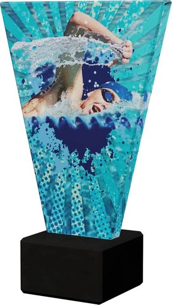 - Kolorowe trofeum szklane na podstawie marmurowej - PŁYWANIE H-17.5cm, T-10mm
