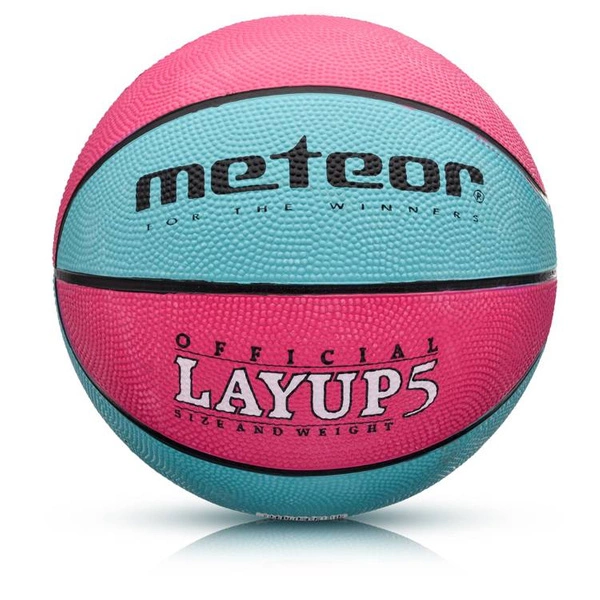 Piłka koszykowa Meteor LayUp 5 różówo-niebieska 07085