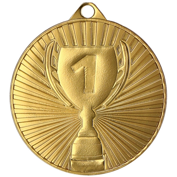 - Medal złoty stalowy o średnicy 45mm z wytłoczoną grafika pucharu.