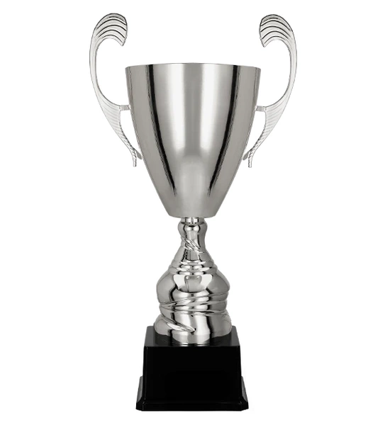 - Srebrny metalowy puchar z ozdobnymi ramionami to idealna nagroda dla zwycięzców. Puchar dostępny w różnych wysokościach.