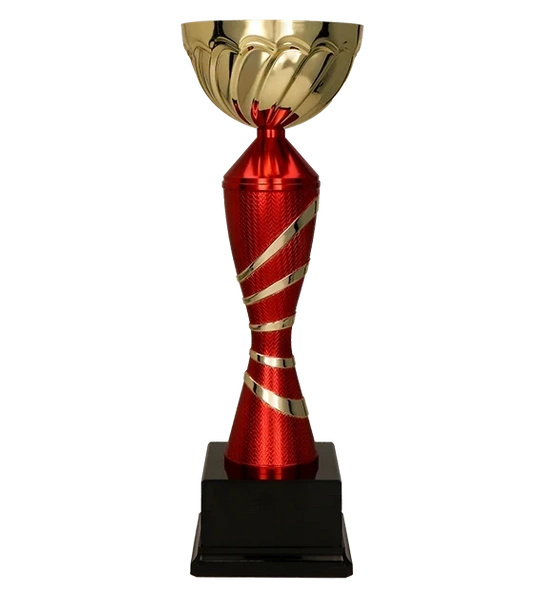 - Puchar okolicznościowy z kolekcji ORAR, złoty kielich umieszczony na czerwono-złotej stopce i stabilnej podstawie.