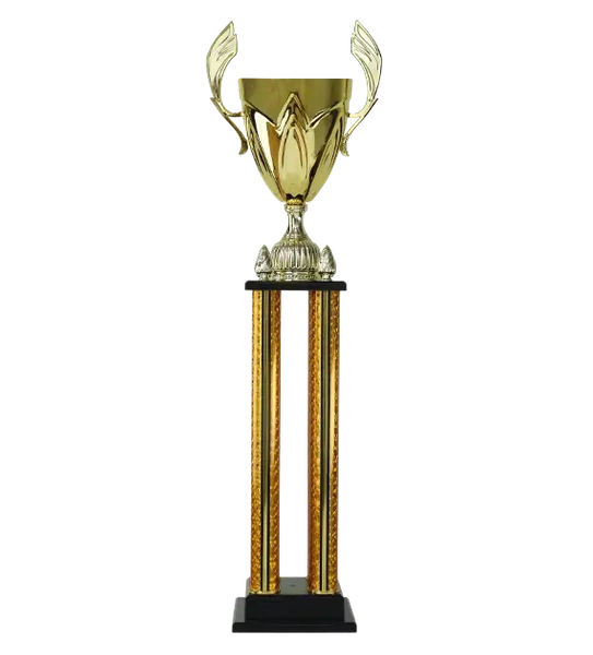 - Złoty, metalowy puchar znajdujący się na stabilnej i solidnej podstawie. Dostępny w różnych wysokościach.