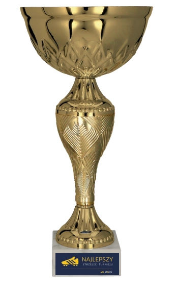 - Złoty metalowo-plastikowy puchar dostępny w różnych wysokościach.