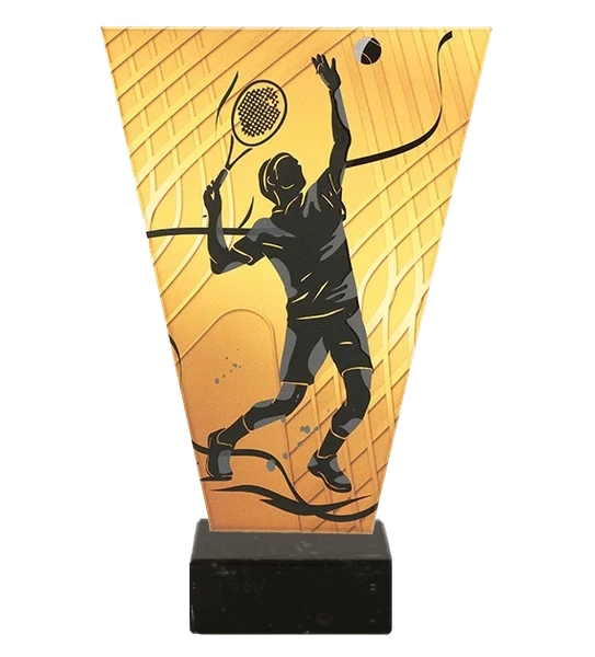- Szklane trofeum z motywem tenisa ziemnego.