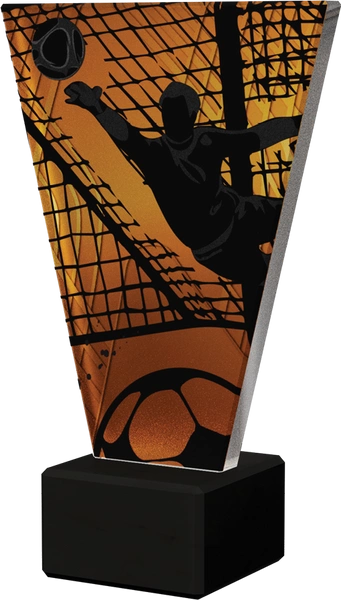 - Szklane trofeum z motywem piłki nożnej.