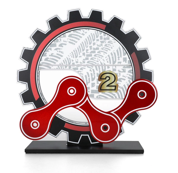 - Statuetka wykonana z drewna i metalu o wysokości 25cm oraz szerokości 25cm. Przeznaczona do nagród związanych z kolarstwem. Do wyboru miejsca 1-3.
