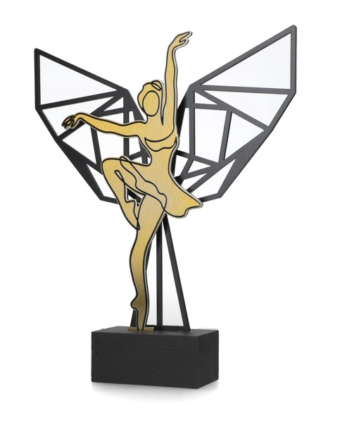 - Statuetka wykonana z drewna i metalu o wysokości 25cm oraz szerokości 20,5cm. Przeznaczona do nagród związanych z tańcem.