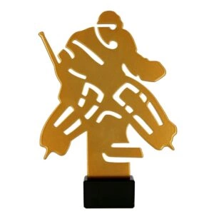 - Złota statuetka o eleganckim designie, który sprawia że idealnie nadaje się na turnieje w hokeja. Statuetka wysokości 21cm