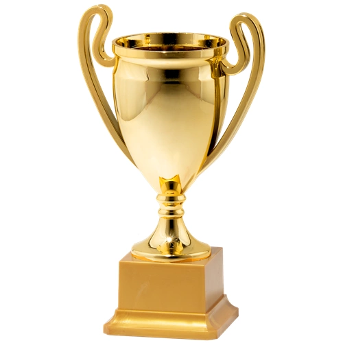 Klasyczny złoty puchar z złotą podstawą o wysokości 22cm - uniwersalna nagroda na zawody i turnieje.