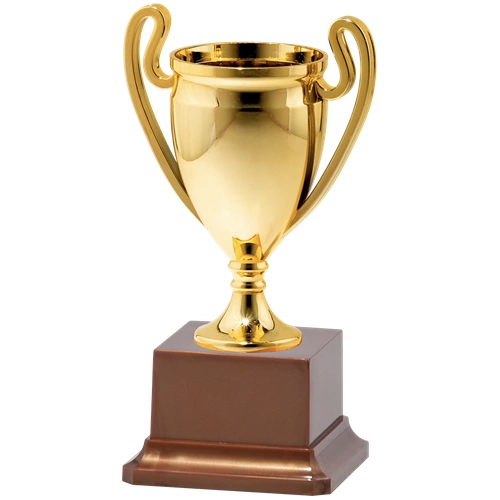 Klasyczny złoty puchar z brązową podstawą o wysokości 18cm - uniwersalna nagroda na zawody i turnieje.