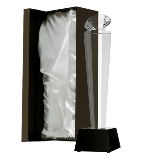 - Nowoczesne trofeum szklane o eleganckim wyglądzie. Posiada estetyczną formę i transparentną powierzchnię. Trofeum o wymiarach 28x8cm i grubości 3cm.