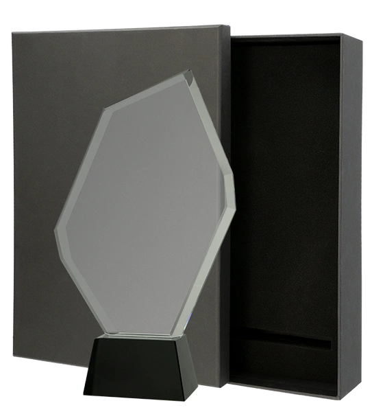 - Nowoczesne trofeum szklane o eleganckim wyglądzie. Posiada estetyczną formę i transparentną powierzchnię. Trofeum o wymiarach 29x16,5cm i grubości 1,9cm.