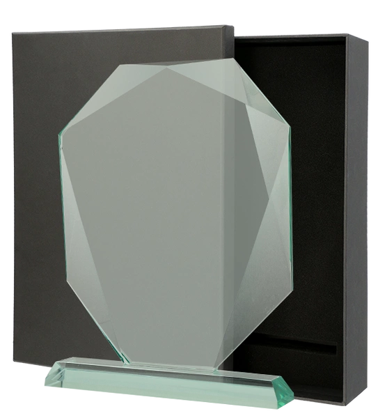 - Nowoczesne trofeum szklane o eleganckim wyglądzie. Posiada estetyczną formę i transparentną powierzchnię. Trofeum o wymiarach 24x18cm i grubości 1,9cm.