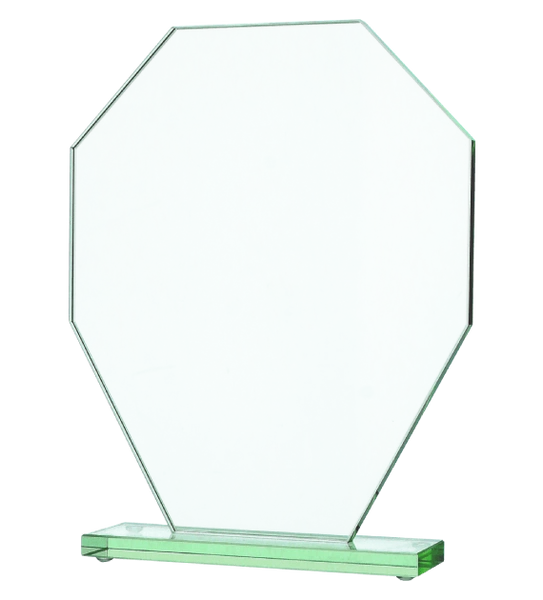 Szklane trofeum o wymiarach 23x18cm i grubości 1cm.