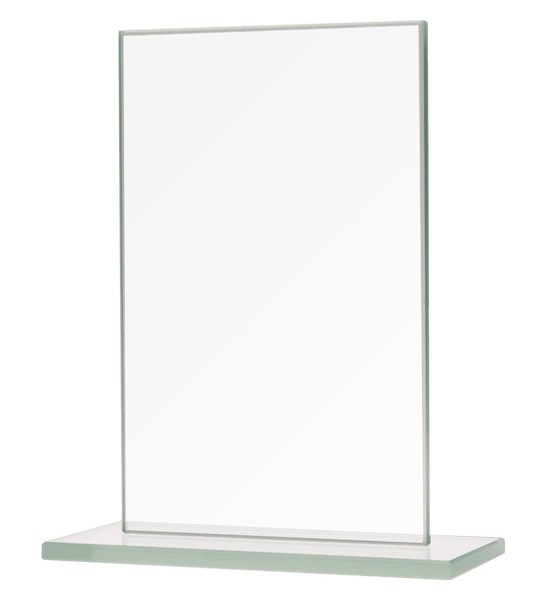 Szklane trofeum o wymiarach 15x10cm i grubości 0,6cm.