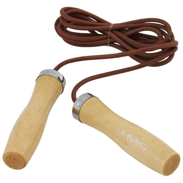 SK07 HMS - to skakanka z drewnianymi uchwytami oraz ze skórzaną linką. Produkt wyposażono w łożyska, które wpływają na płynny ruch. Linka o długości 270cm została wykonana ze skóry wysokiej jakości, zapewniając tym samym długie i bezproblemowe użytkowanie. Wygodne, ergonomiczne rączki świetnie układają się w dłoniach, gwarantując pewny chwyt podczas całej sesji treningowej. Ćwiczenia przy użyciu skakanki SK03 szybko poprawią kondycję fizyczną i koordynację ruchową. Ponadto pozwolą spalić maksymalną ilość kalorii, a tym samym wyszczuplić sylwetkę.
