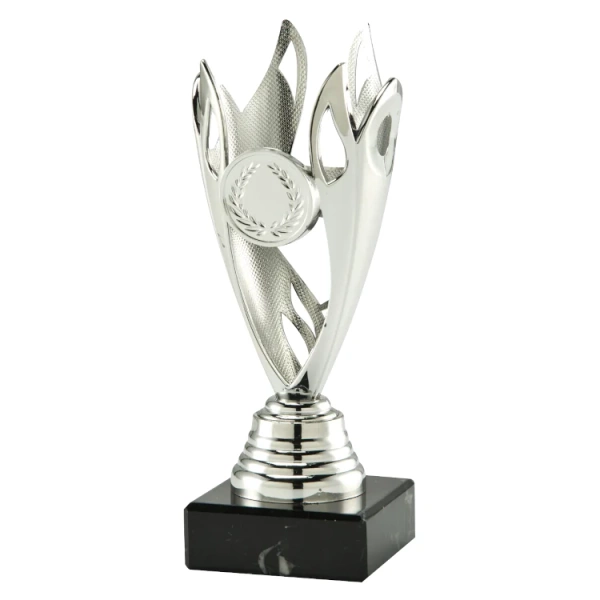 - Puchar srebrny plastikowy na marmurowej podstawie o uniwersalnym charakterze.