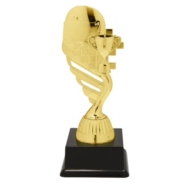 - Statuetka plastikowa złota, wykonany z plastiku na plastikowej podstawie o sportowym charakterze.