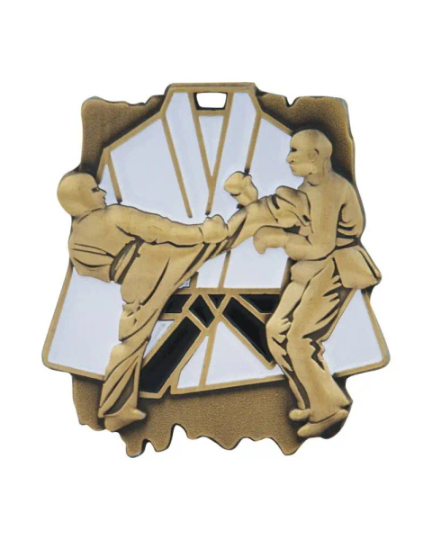 - Medal o eleganckim designie, który sprawia że idealnie nadaje się na karate. Medal o wymiarach 71x66 mm