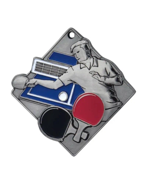 - Medal o eleganckim designie, który sprawia że idealnie nadaje się na tenis stołowy. Medal o wymiarach 70x70 mm